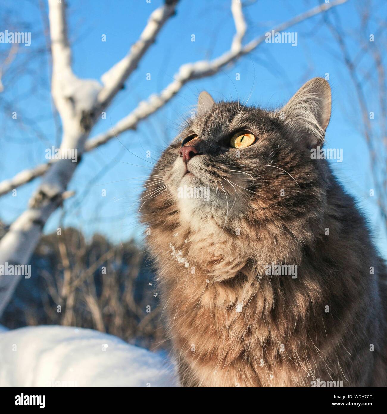 Hairy Cat Looking Up Against Sky Stock Photo Alamy